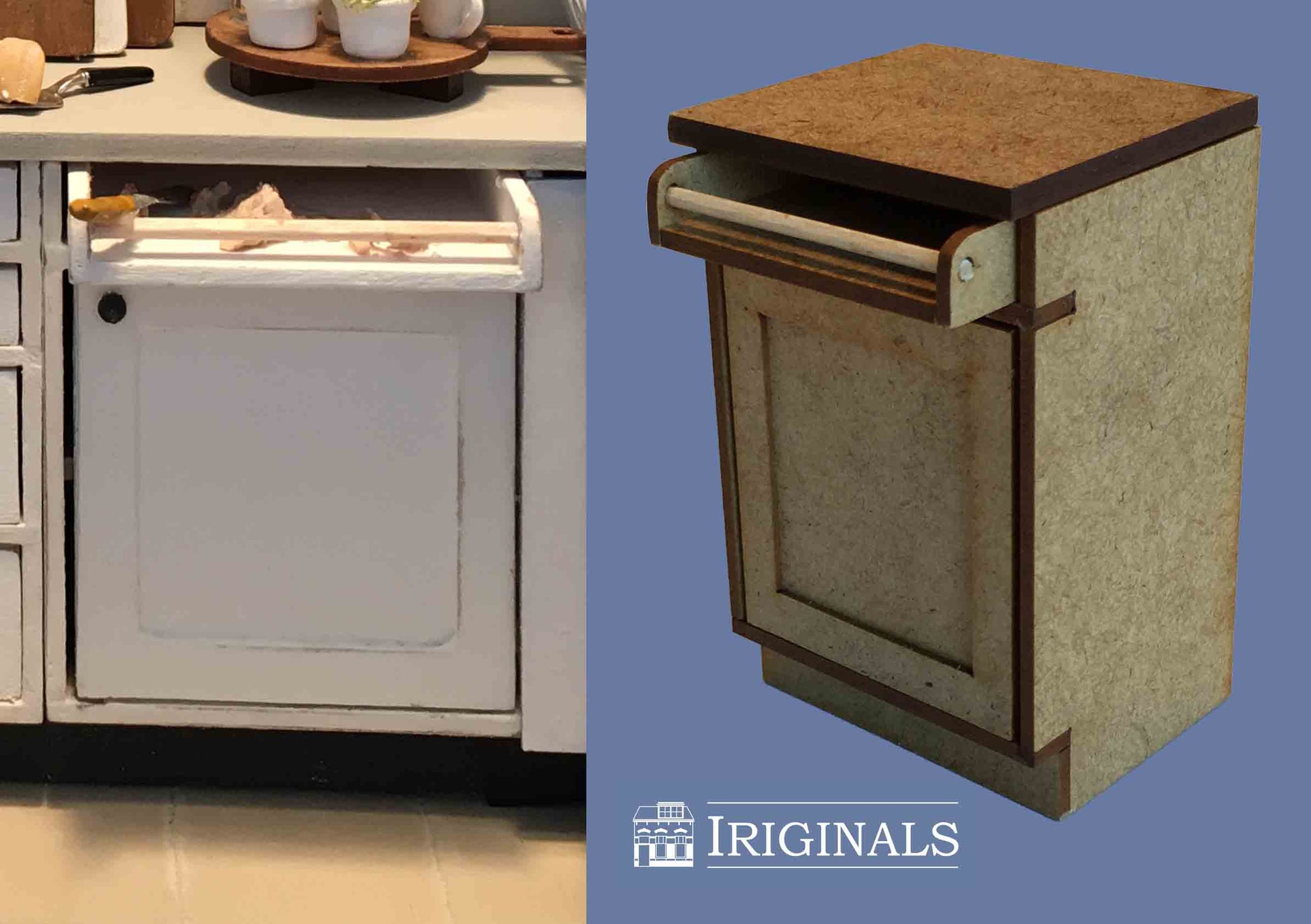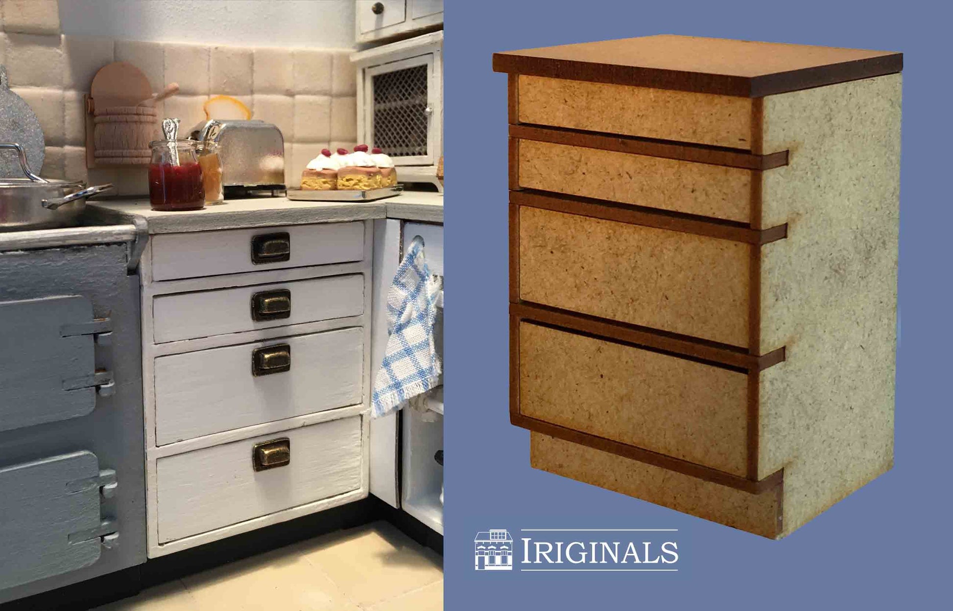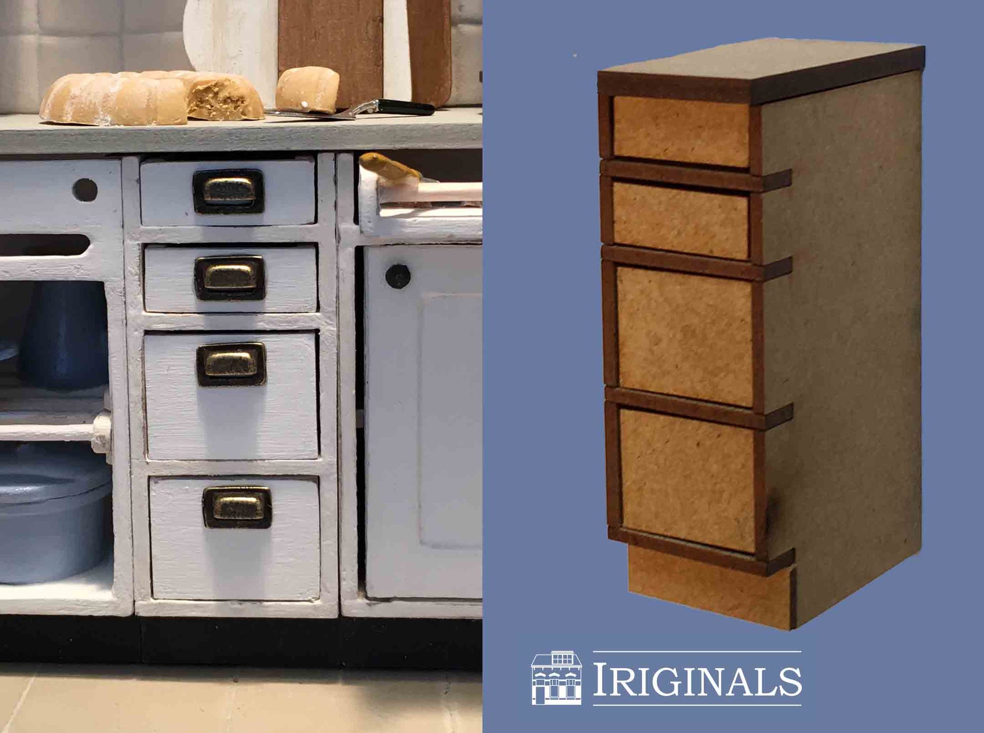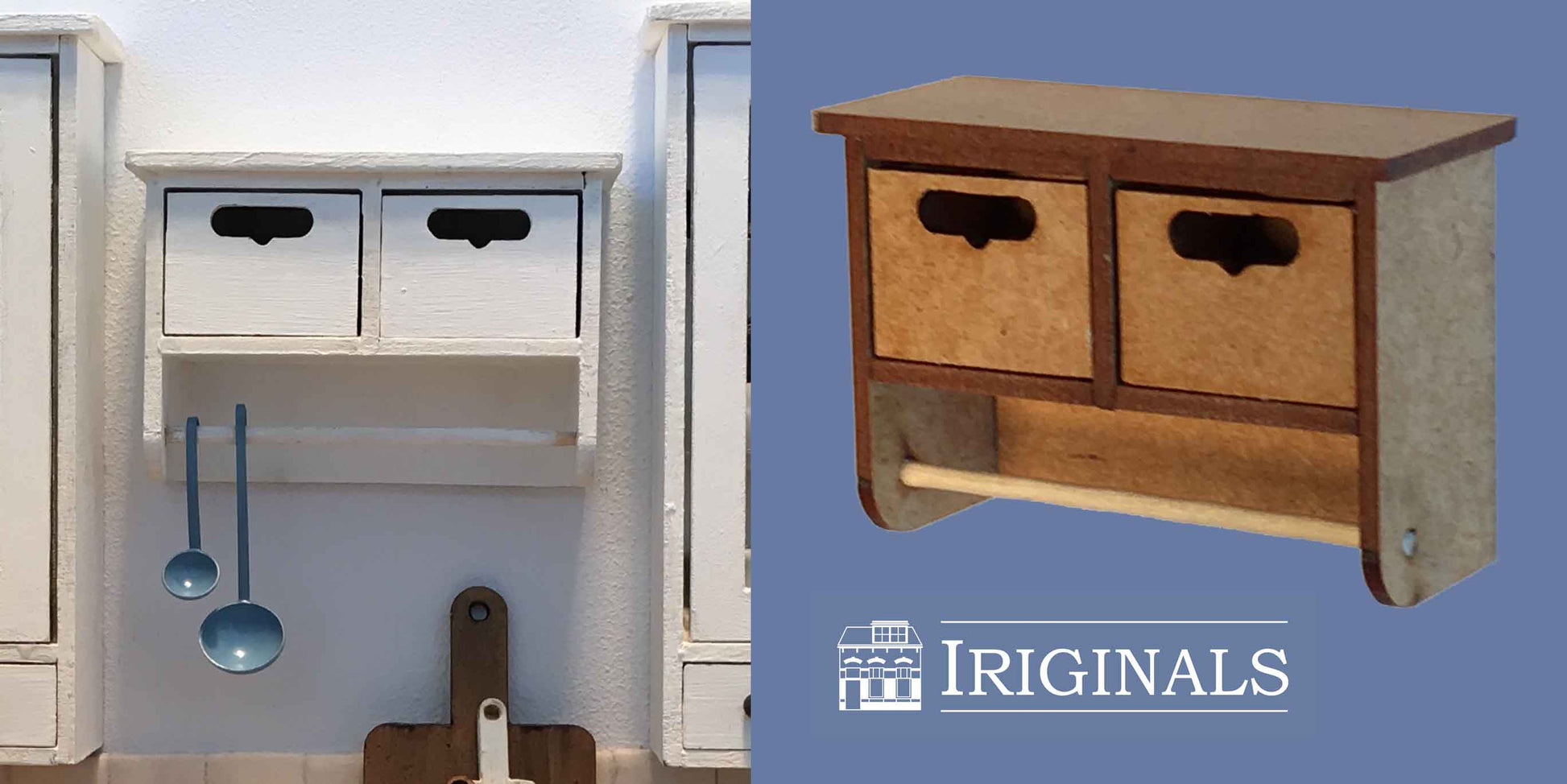 Ons nieuwste project is een Landelijke Keuken. Keukens zijn onverminderd populair bij poppenhuisliefhebbers en wij horen van veel klanten dat er behoefte is aan een 'modulair systeem' waarbij men een keuken geheel naar eigen behoefte kan indelen. Wij zijn aan de slag gegaan met het produceren van 11 verschillende kastjes, aangevuld met diverse andere meubeltjes die óók buiten de keuken kunnen worden gebruikt.